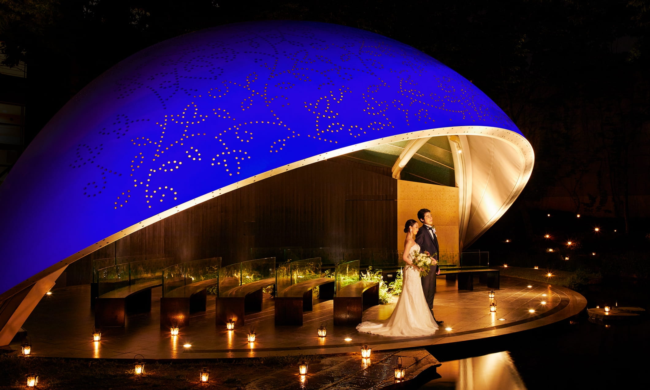 おふたりが約束の言葉を交わすとき、チャペルの天蓋がゆっくりと開きます。