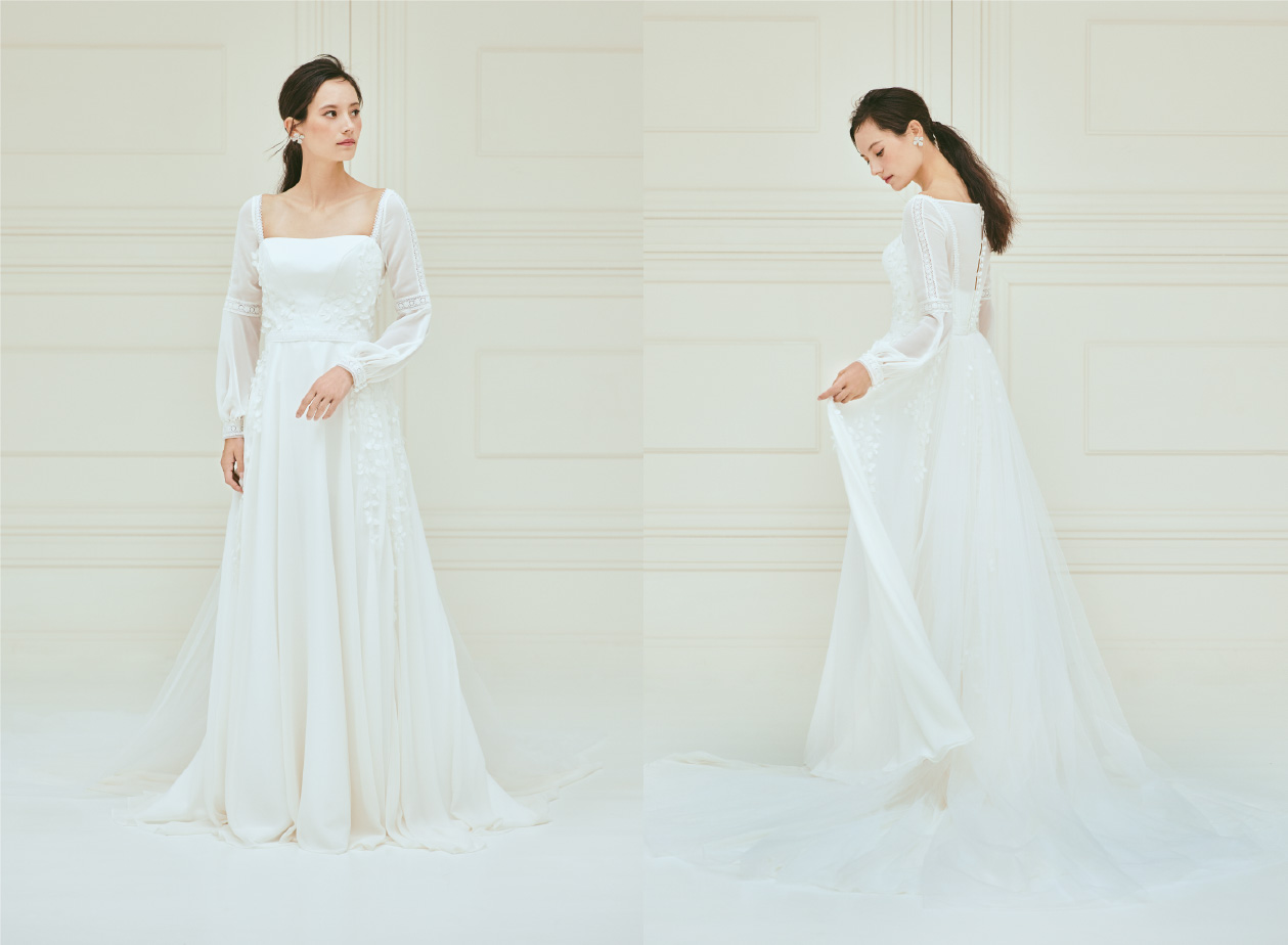 追求したのは、女性らしいシルエットと上質なマテリアル。ガーデンチャペルを包む緑の眩しさ、
