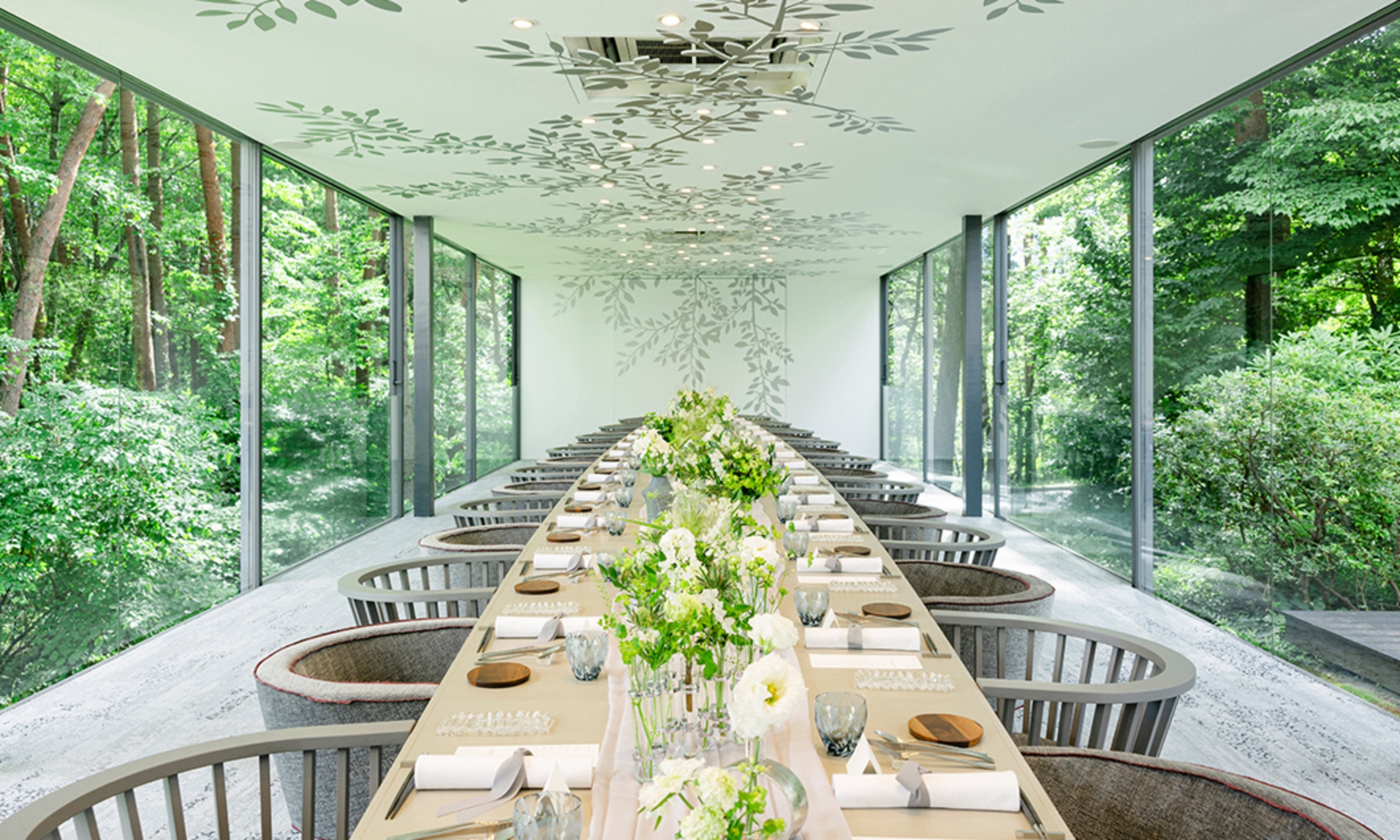 スタイリッシュなリビング・ダイニングとガーデンが調和した、温かみあるアットホームな空間「アルフレスコ」。そして、両面をガラスに囲まれ、四季の自然を感じながら上質な時間を過ごせる「ブリラーレ」。それぞれ異なる魅力を持つ、2つの会場から、おふたりのスタイルに合わせてお選びいただけます。